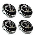 Jogo 4 Calota Calotinha Centro Roda Liga Leve Toyota Corolla Etios Fielder KR R64 Preto com Cromado