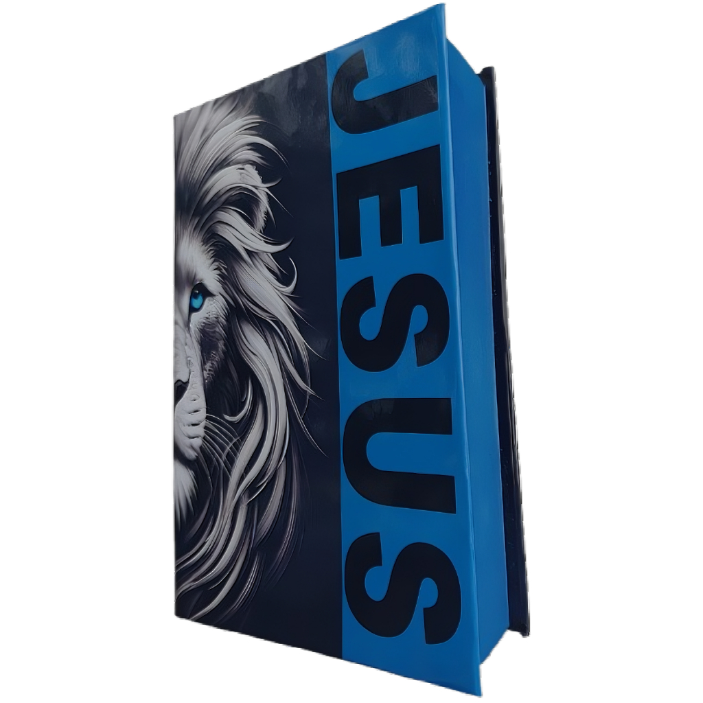 Bíblia Sagrada Tamanho Grande Capa Dura Com Harpa Palavras de Jesus em Vermelho Leão De Judá Azul