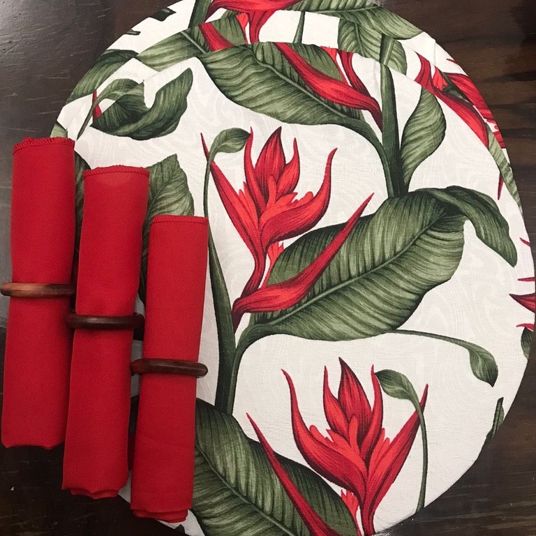 Kit 6 Capas de Sousplat + 6 Guardanapos + 6 Porta Guardanapos de Madeira