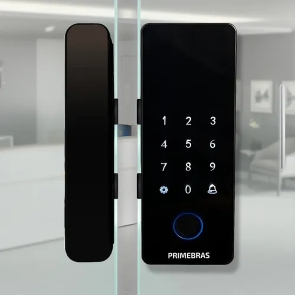 Fechadura Eletronica Para Porta de Vidro Com Biometria Digital Touch + App + Senha + Cartão Tag Primebras Athenas