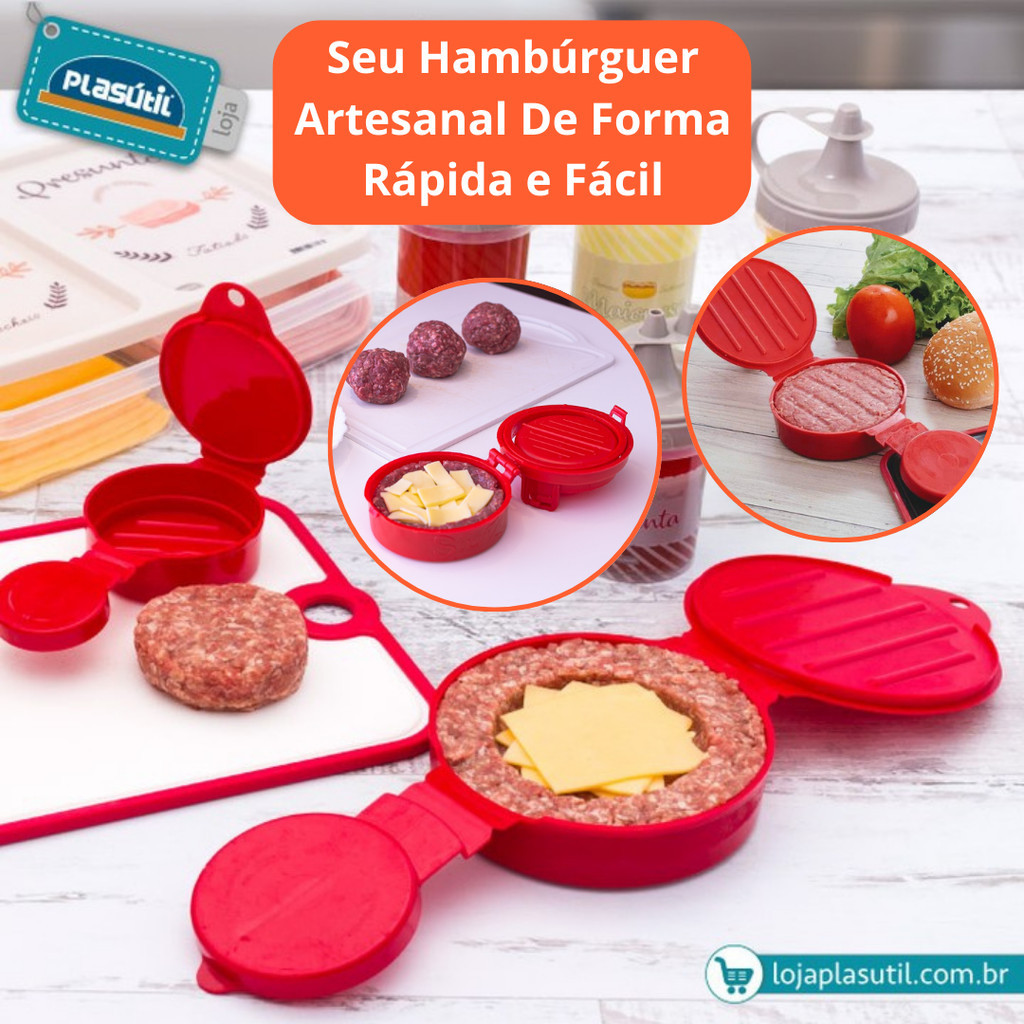 Molde Para Hambúrguer Forma Artesanal Recheado Caseiro Plasutil Cozinha