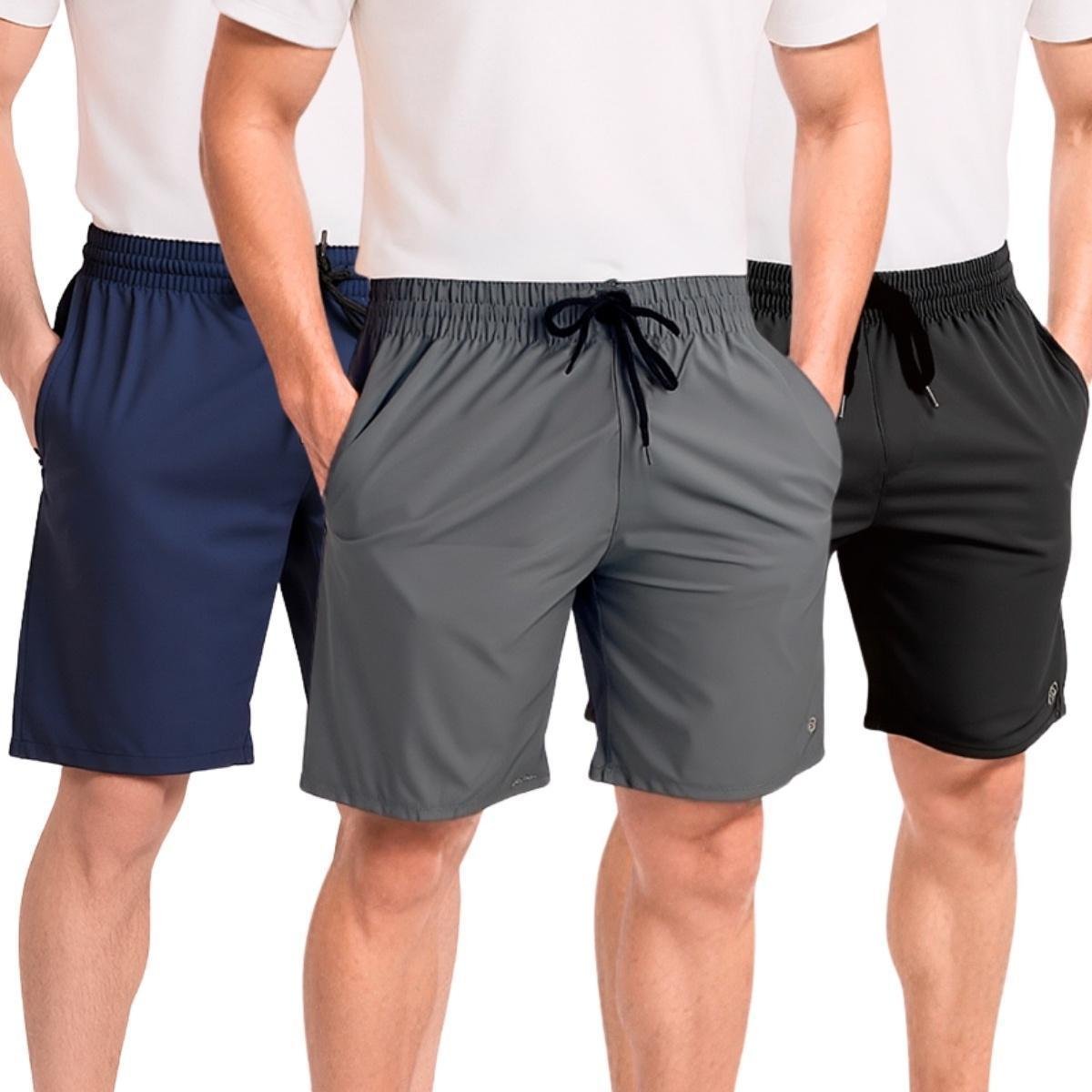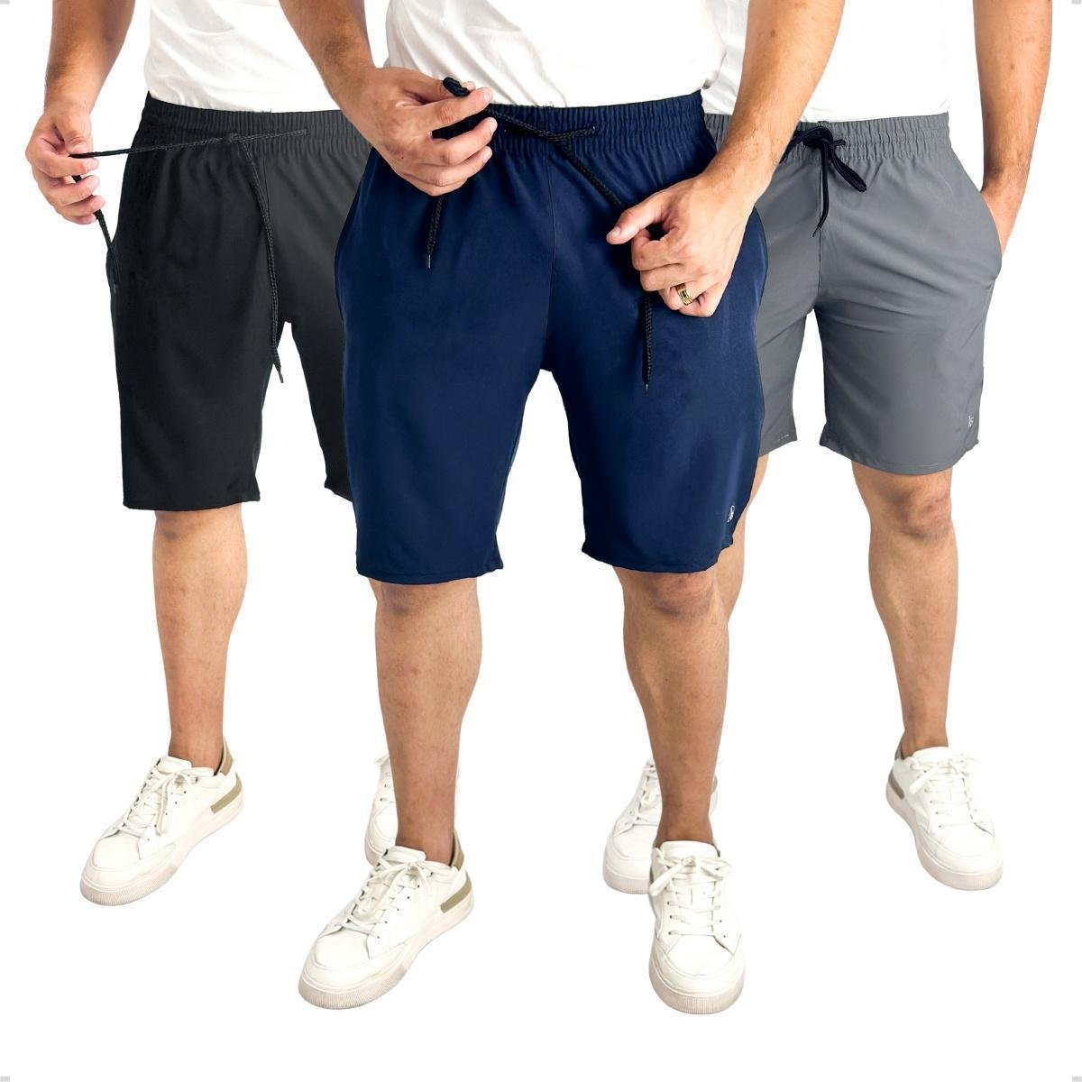 KIT com 3 Bermudas/Short Masculina Confortável Leve Crossfit, Tactel elastano, Bermudas Premium