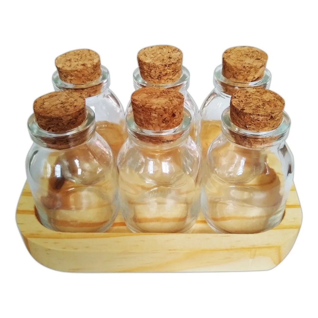 Porta Condimentos Tempero Potes De Vidro Tampa Rolha 6 Potes