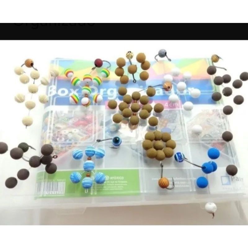 Kit para Pesca de Tambas Boia Cevadeira + Estojo Com Anteninhas Anzóis Miçangas Flutuadores de EVA