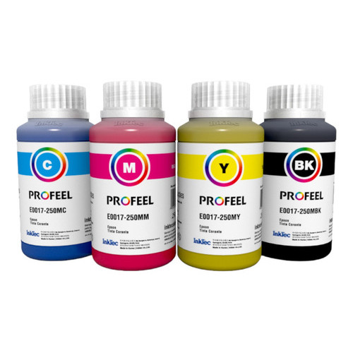 Kit 4x250ml Tinta Corante InkTec Profeel E0017 compatível com impressoras Epson Jato de Tinta L110 L120 L210 L220 L355 L365 L375 L395 L396 L455 L395 L496 L555 L575 L595 L596 L800 L805 L850 L3110 L3150 L5190 L2170 L1300