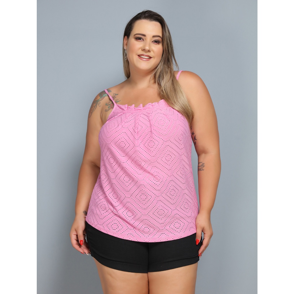 Blusa Alcinha Feminina Plus Size Cropped Alça Grossa Laise Regata Feminina Babado Blusinha Lesie Canelado Verão GG Veste 46 48 50 52