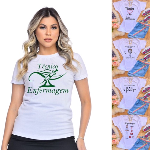 Camiseta T-shirt BLUSA PROFISSÃO FEMININA MODELOS DE TÉCNICOS DE ENFERMAGEM
