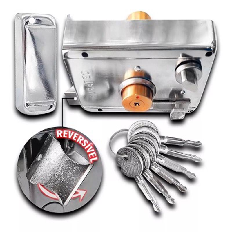 Fechadura Portão Social Sobrepor Duratec Chave Tetra Trinco Externa Cromada Anti Furto