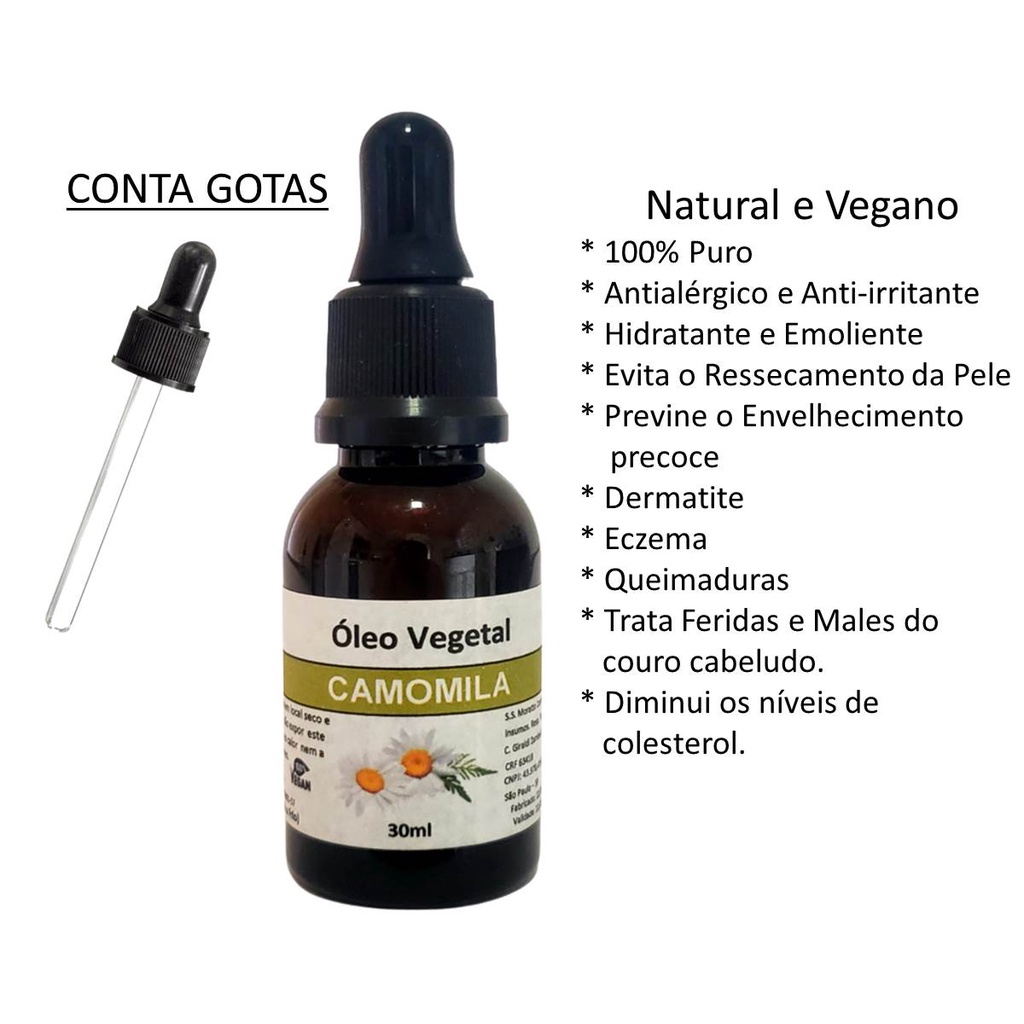 Óleo Vegetal De Camomila 100% Natural Puro 30ml