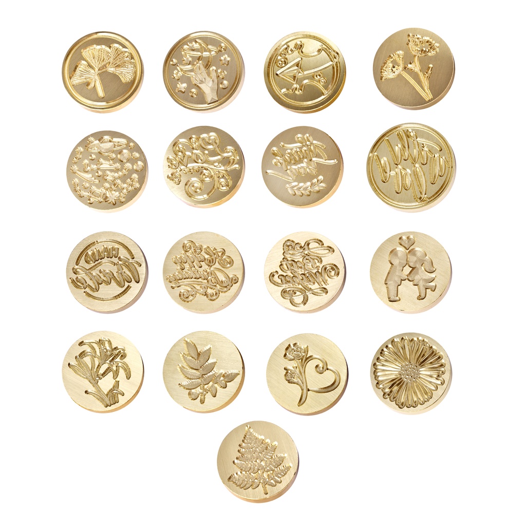 Cabeça de cobre selo cera selo selo cabeça flor fogo pintura alça de madeira conjunto para o convite de casamento assinatura selo de presente