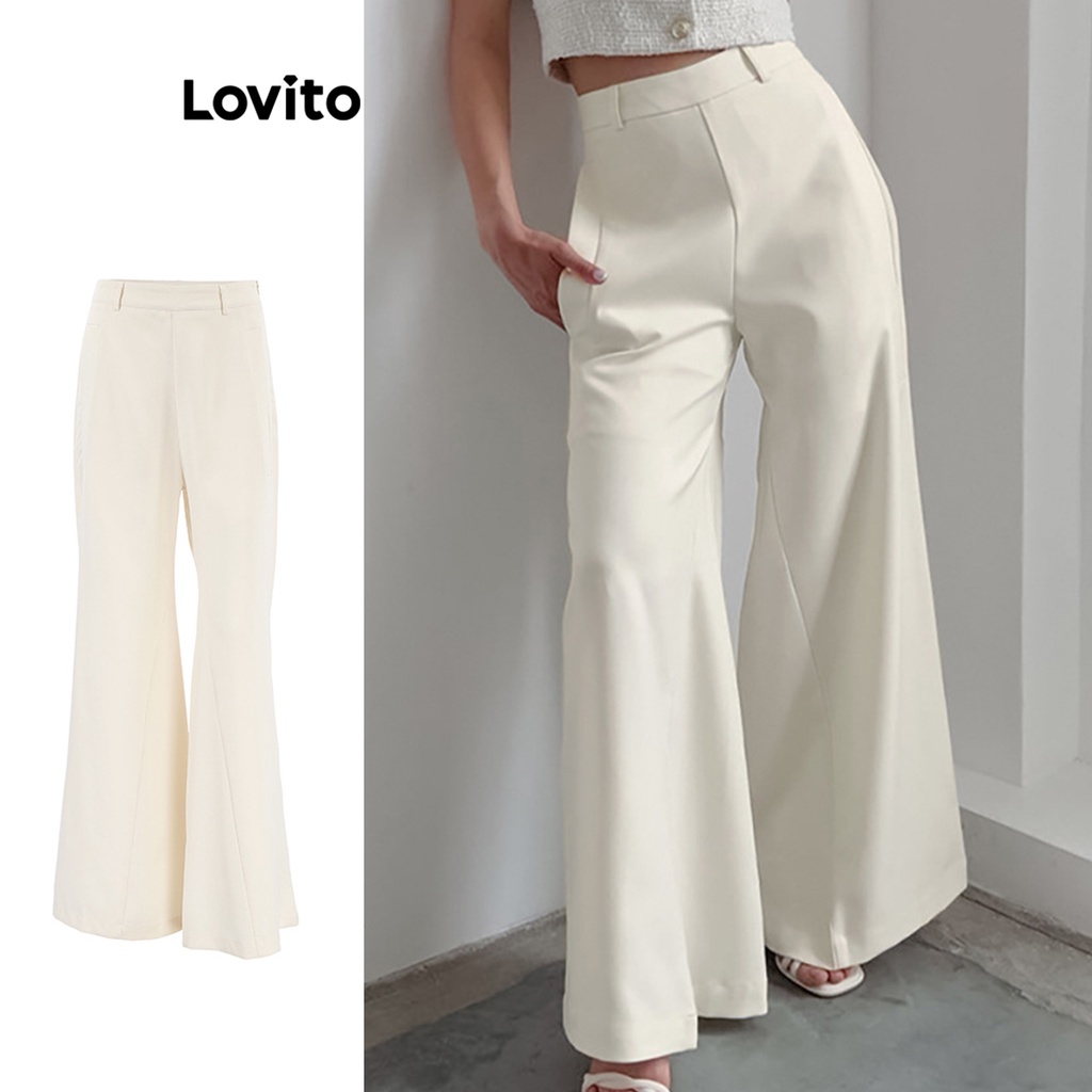Lovito Calça casual feminina com botão de bolso e estrutura lisa LNM64183