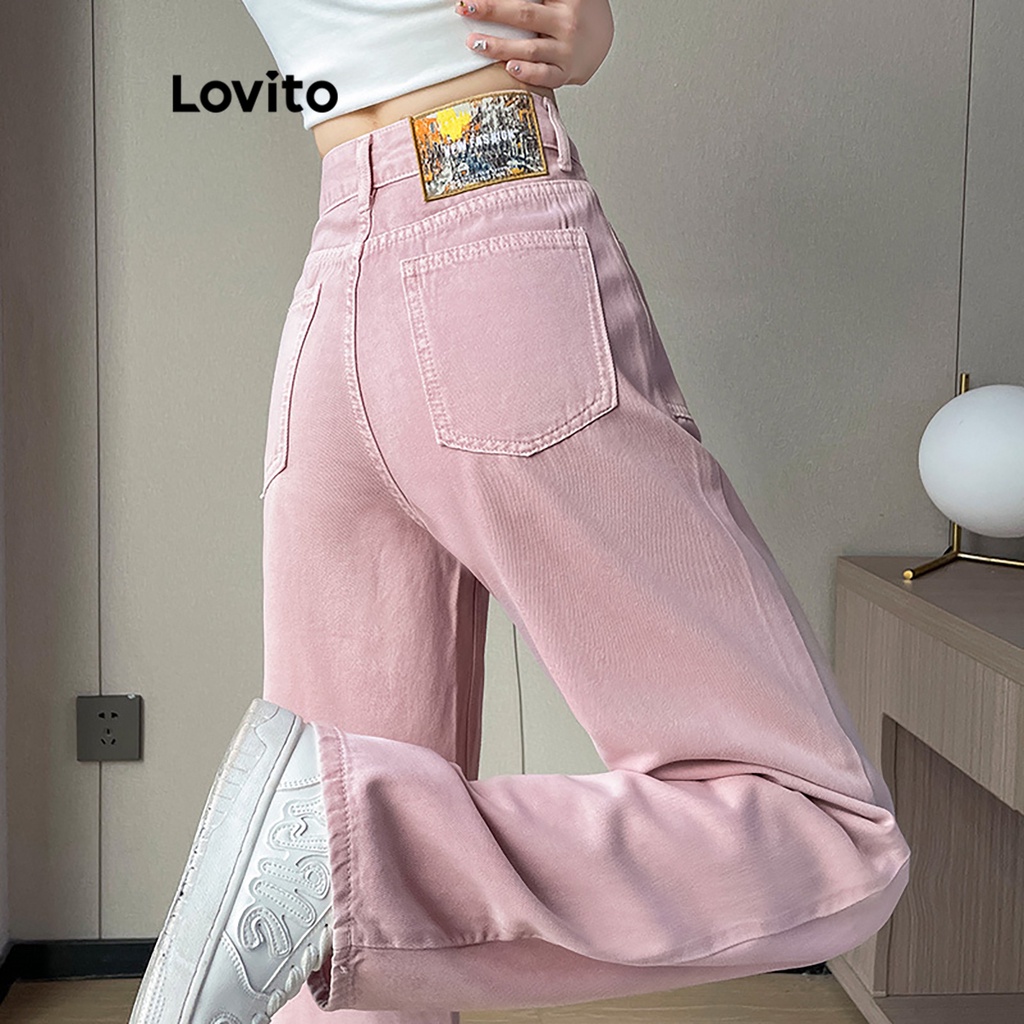 Lovito Casual Calça Jeans Feminina Lisa com Bolso LNA31176 (Rosa)