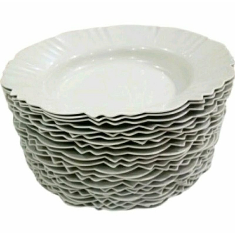 Kit 10 prato pétala fundo com borda BRANCO para refeição churrasco festa jantar redondo prato plastico