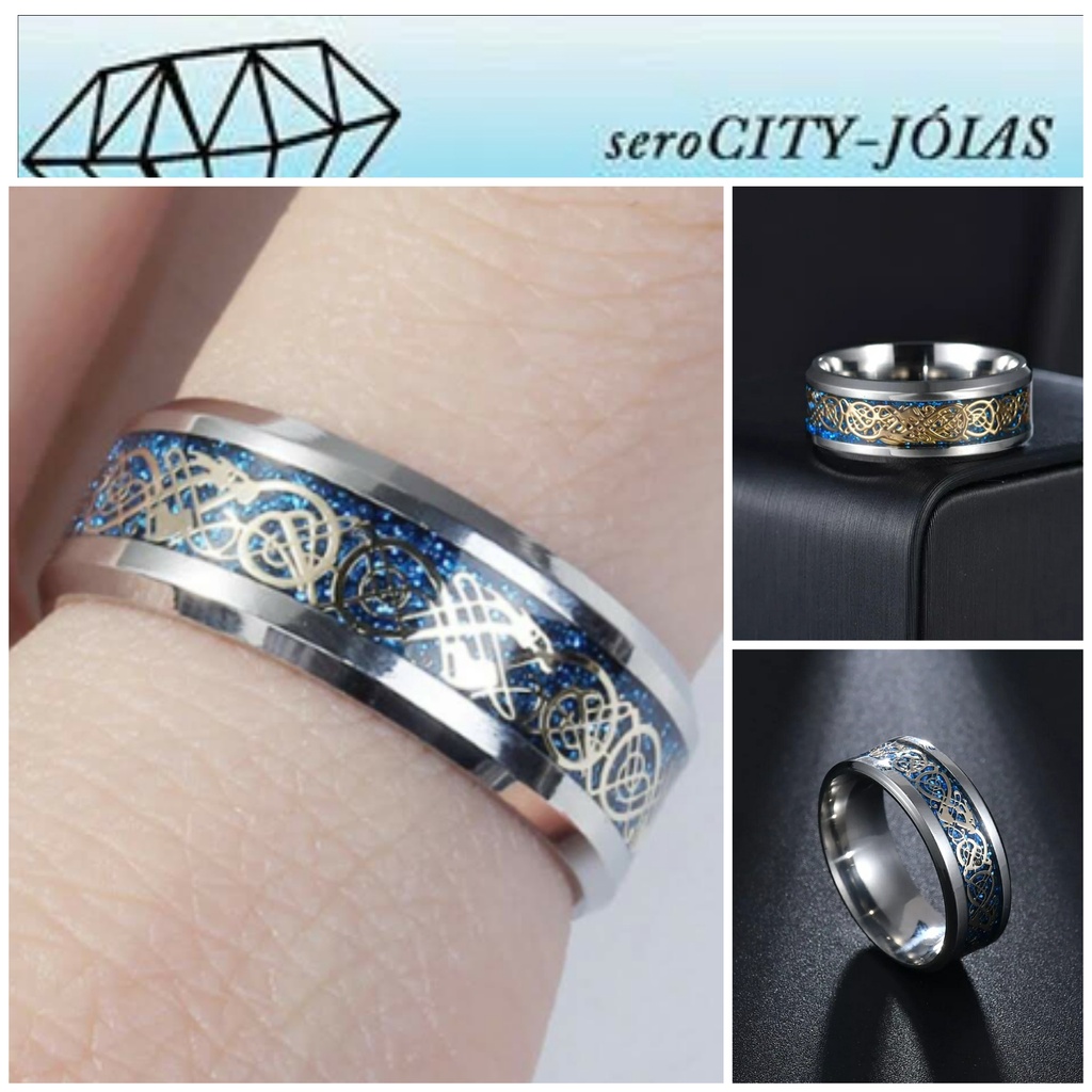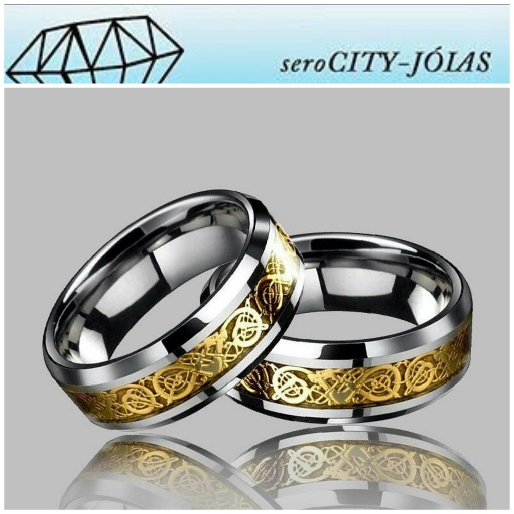 Par De Alianças Dragão Celta Prateada E Dourada 8mm Aro 13 Ao 34