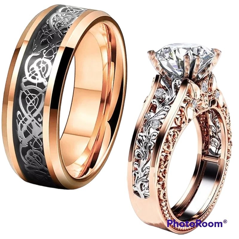 Par De Alianças De Tungstênio Celta Preta e Rose 8mm Aro 13 Ao 38