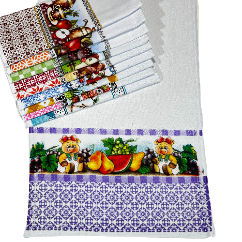 NOVO Pano de Prato atoalhado Estampado Felpudo Kit 10 35x55