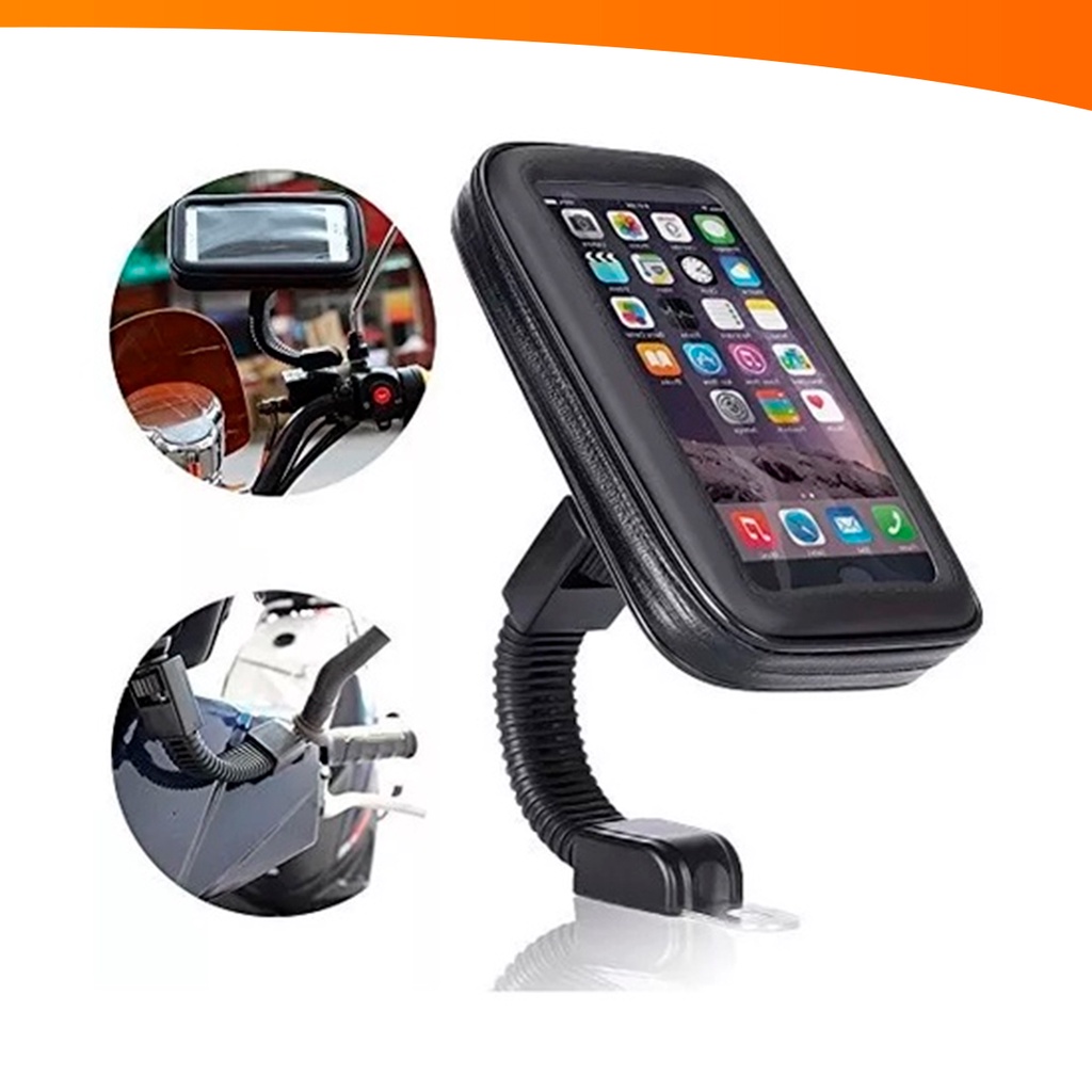 Suporte Celular Para Moto Case Impermeável para Smartphone até 6,3" Polegadas Fixação Retrovisor da Moto
