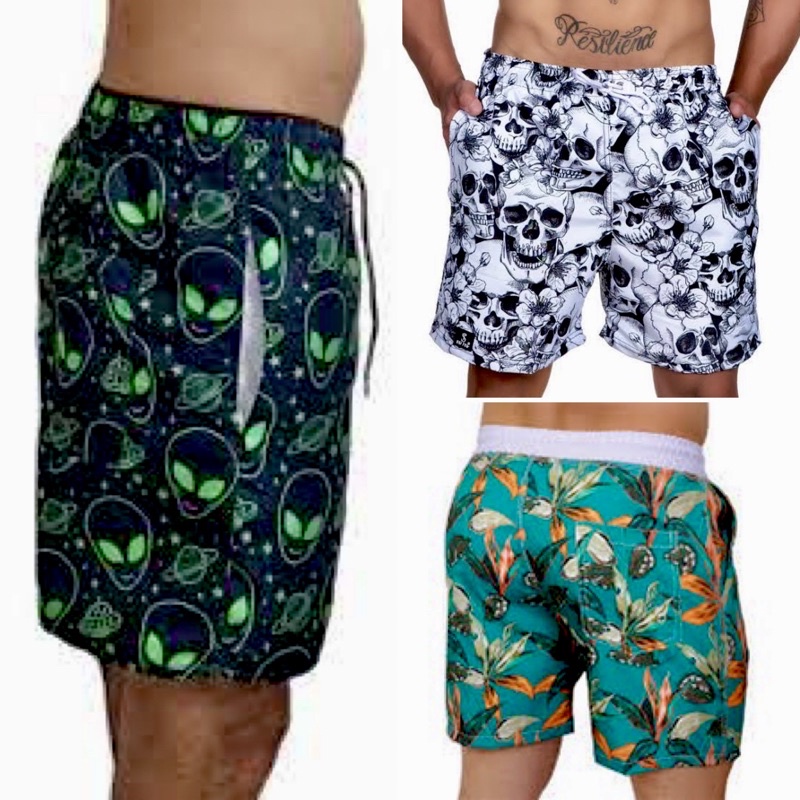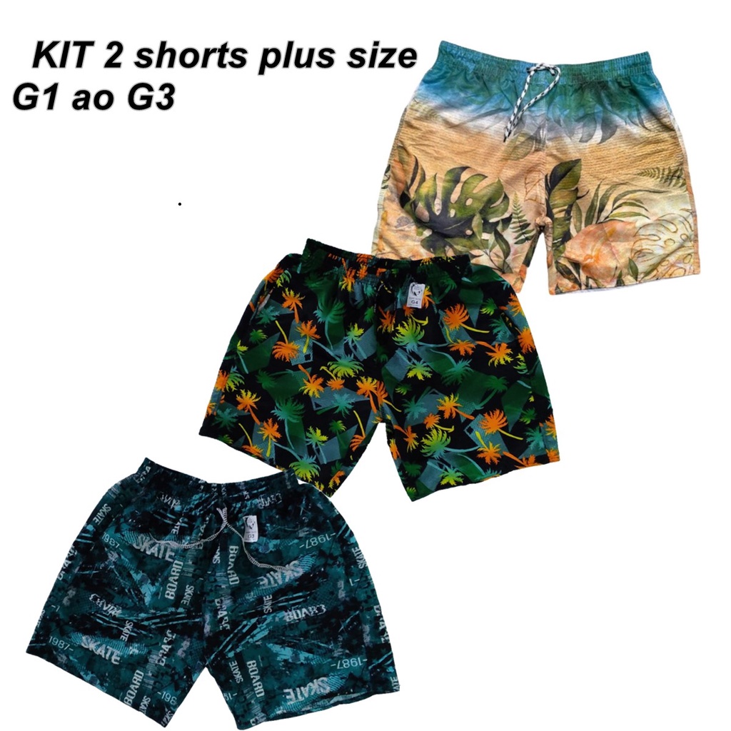 Kit 3 Shorts mauricinho tactel moda praia plus size G1 ao G5 estampas exclusivas