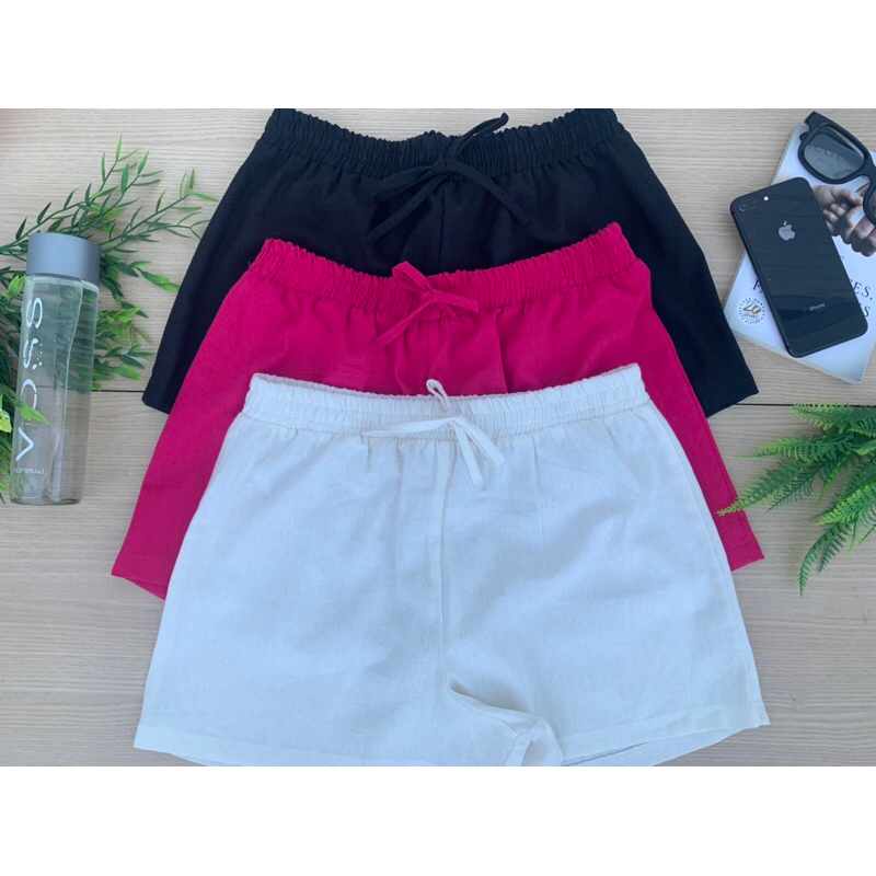 Kit 3 Short Linho do P ao Plus Size verão feminino Cós elastico bermuda