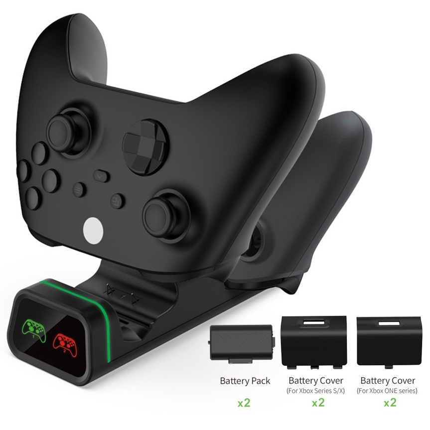 Carregador Duplo com LED para Controles Xbox Series ou Xbox One Acompanha Base de Recarga Dupla + Carregador Duplo + 2 Baterias Recarregáveis