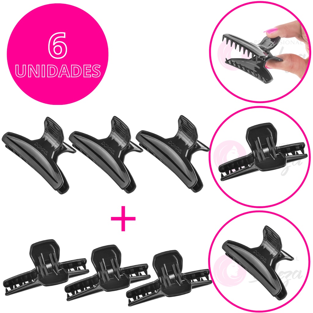 Kit Prendedor Cabelo Plástico Clip Piranha Cabelereiro C/6
