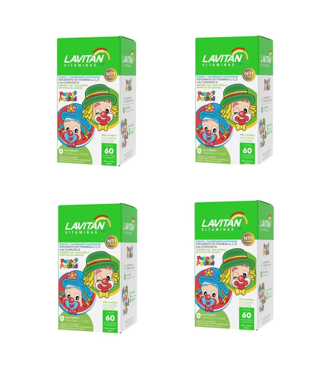 Kit com 4 Suplemento Vitamínico Lavitan Kids Imunidade 60Cps