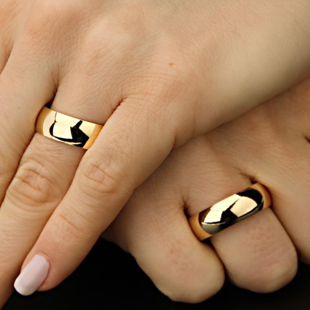 Par De Aliança Abaloada Banhada A Ouro 18k Ultra Resistente Alianças Clássicas Anatômica Dourada Aliança Tradicional Casamento Noivado Compromisso e Anel Solitário Para Noivado Chanfrada Fina 4mm 6mm Promoção com Caixa de Veludo