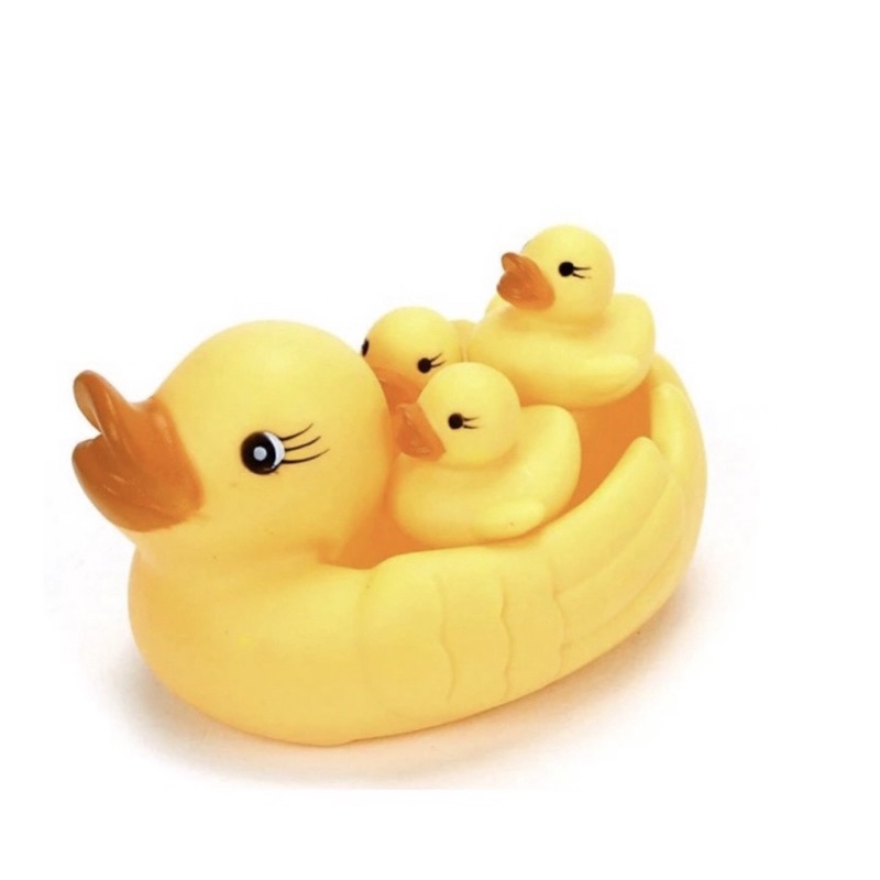 Pato de Borracha Para Banho Brinquedo Infantil com 04 Patinhos Mordedor