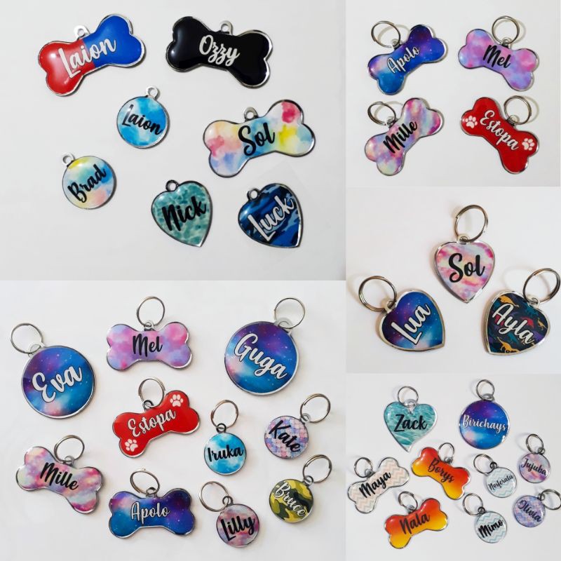 Plaquinha de Identificação Personalizada para Pet com Nome e Telefone do Tutor no Verso-Pingente-Medalha-Tag-Cachorro-Gato-Cão-Placa-Plaquinhas-Pets-Plaqueta-Gata-Gatinha-Cachorrinho-Gatinho-Resina-Resinada-Resinado-Coleira-Dono-Pingente para Gato-Cão