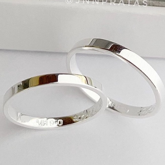 Par de aliança anel prata 2mm 950 925 fininha tradicional namoro compromisso com anel solitario