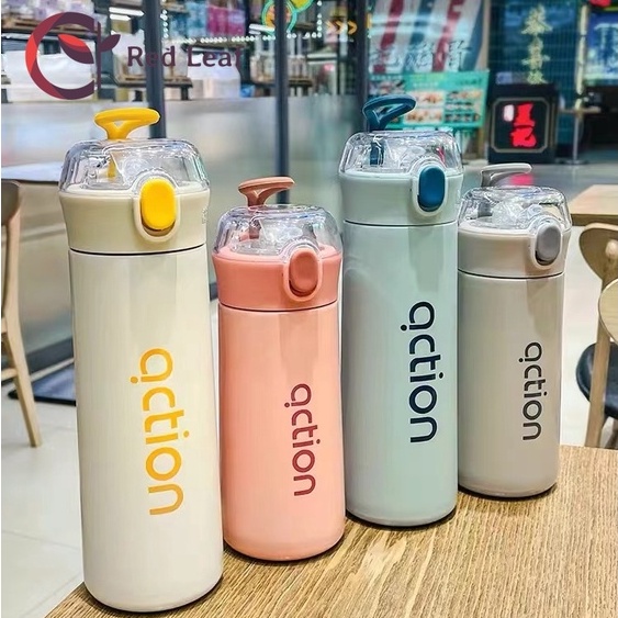 Garrafa Térmica Action Elegante De Aço Inox Com Alça e Canudo De 380ml e 500ml