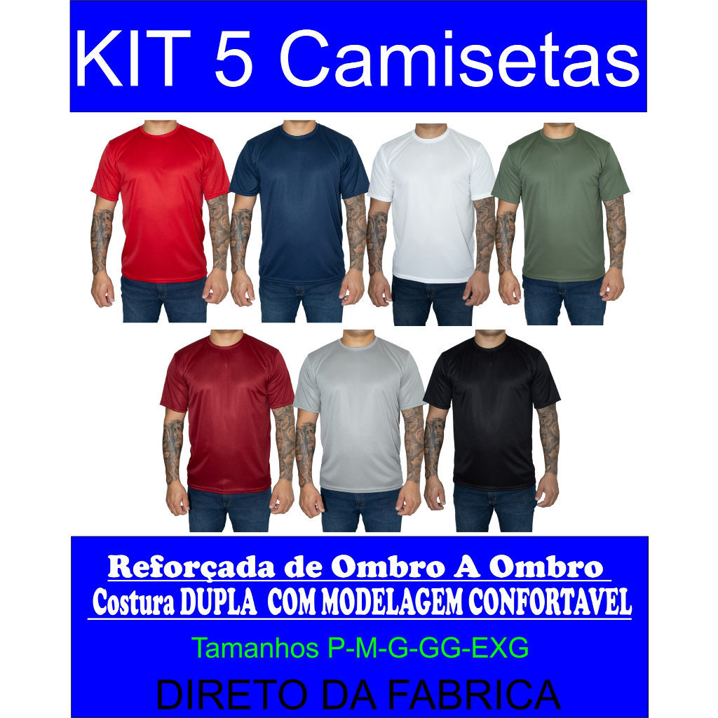 Kit 5 Camiseta Masculina Básica DRY-FIT Malha Fria Academia Corrida Treino