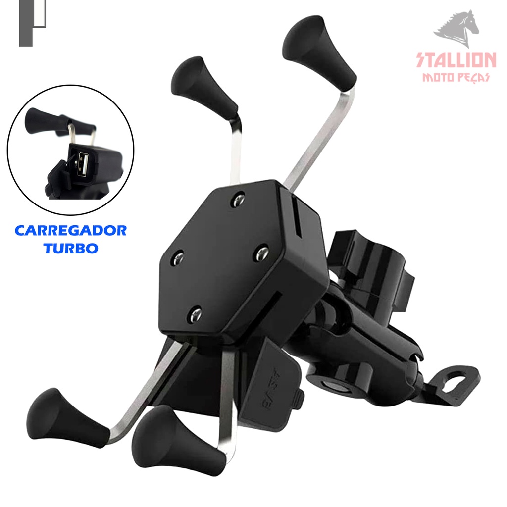 Suporte De Celular Para Moto Com Carregador Turbo Usb Garra Em X Universal Retrovisor Gps Motoboy