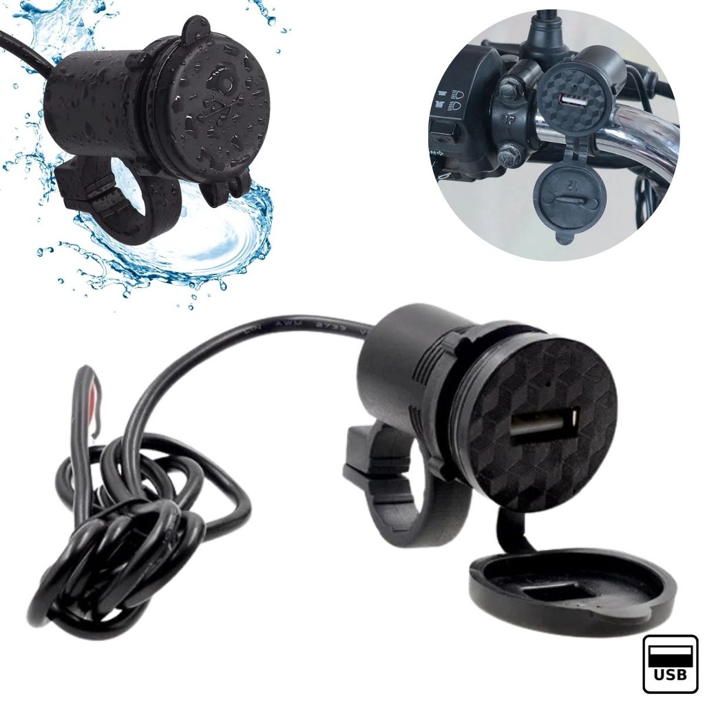 Tomada 12v E USB 5v Para Moto Carregador De Celular Gps A Prova D'gua Motocicleta