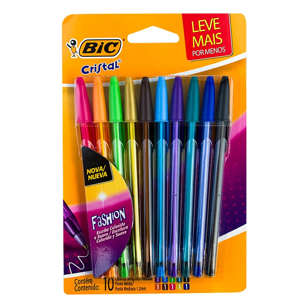 Kit Caneta Bic Cristal Esferográfica Com 10 Cores Fashion Ponta 1.2mm