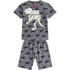 Pijama infantil masculino manga curta e shorts 100% algodão com estampa que brilha no escuro