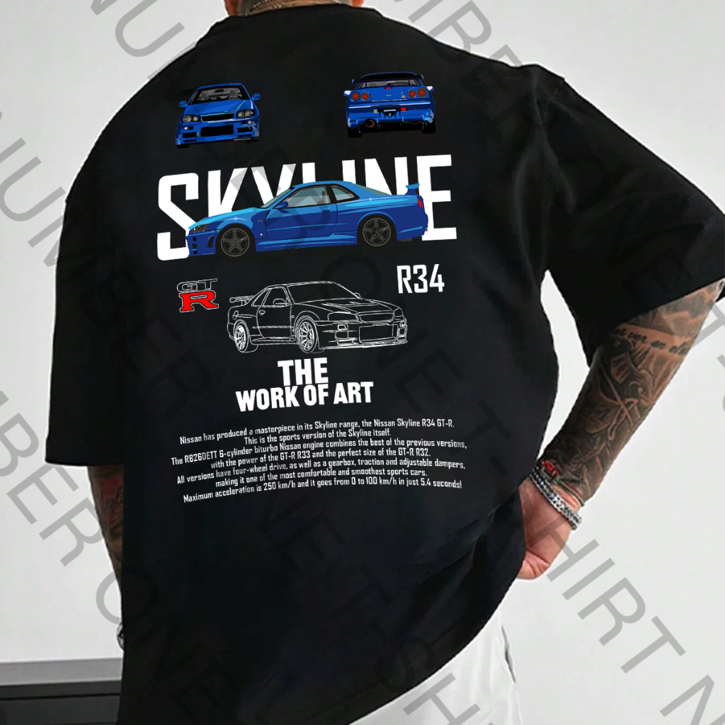 Camiseta Masculina GTR Nissan R34 Skyline 100% Algodão Envio Rápido Alta Qualidade Fio 30.1