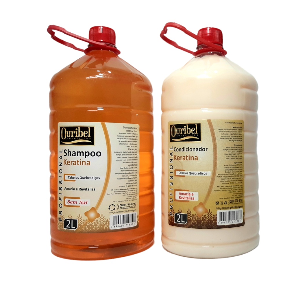 KIT SALÃO DE BELEZA Shampoo + Condicionador de Keratina Ouribel 2 Litros
