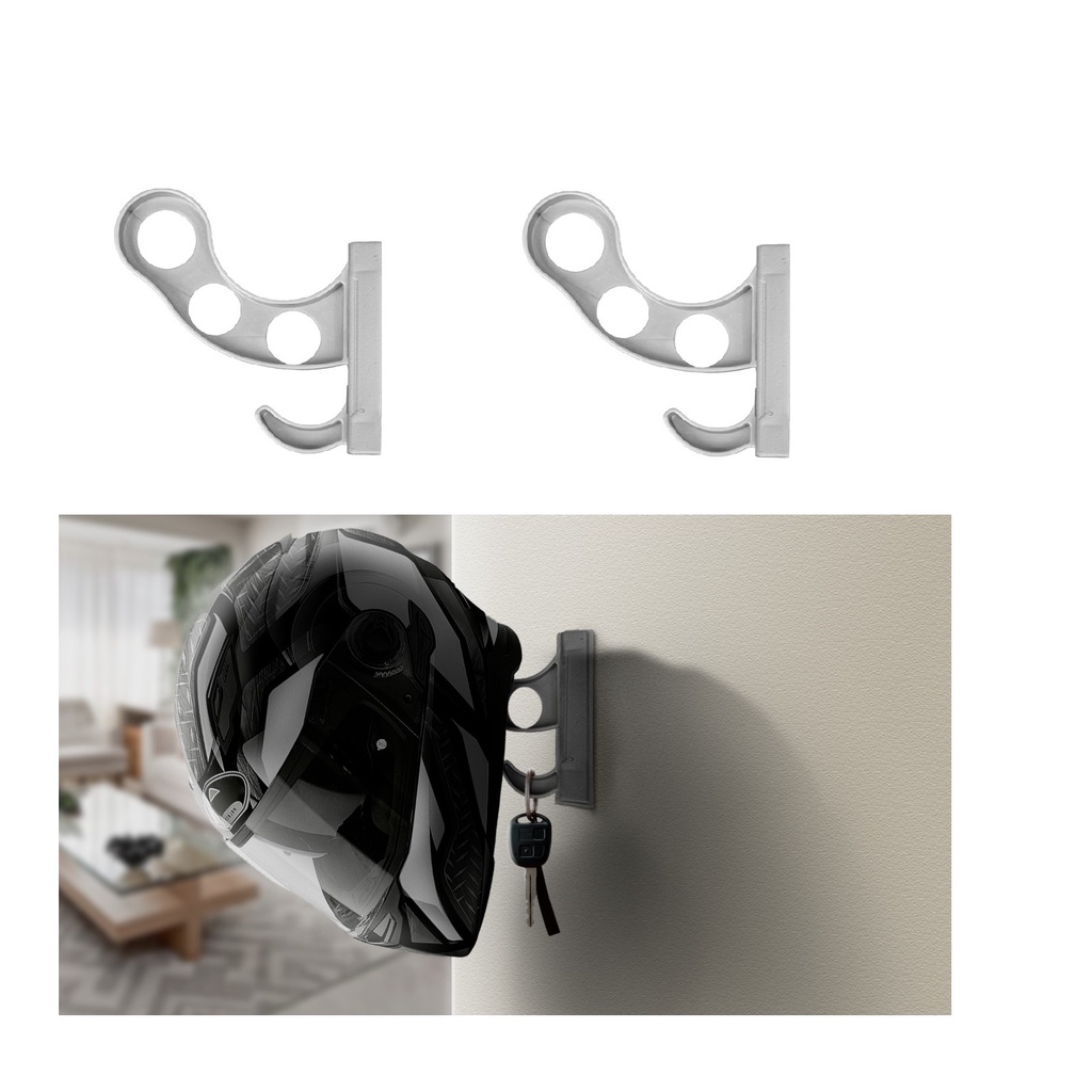 Kit 02 Suportes Gancho Cabide Para Pendurar Capacete Chaves De Parede Fixo