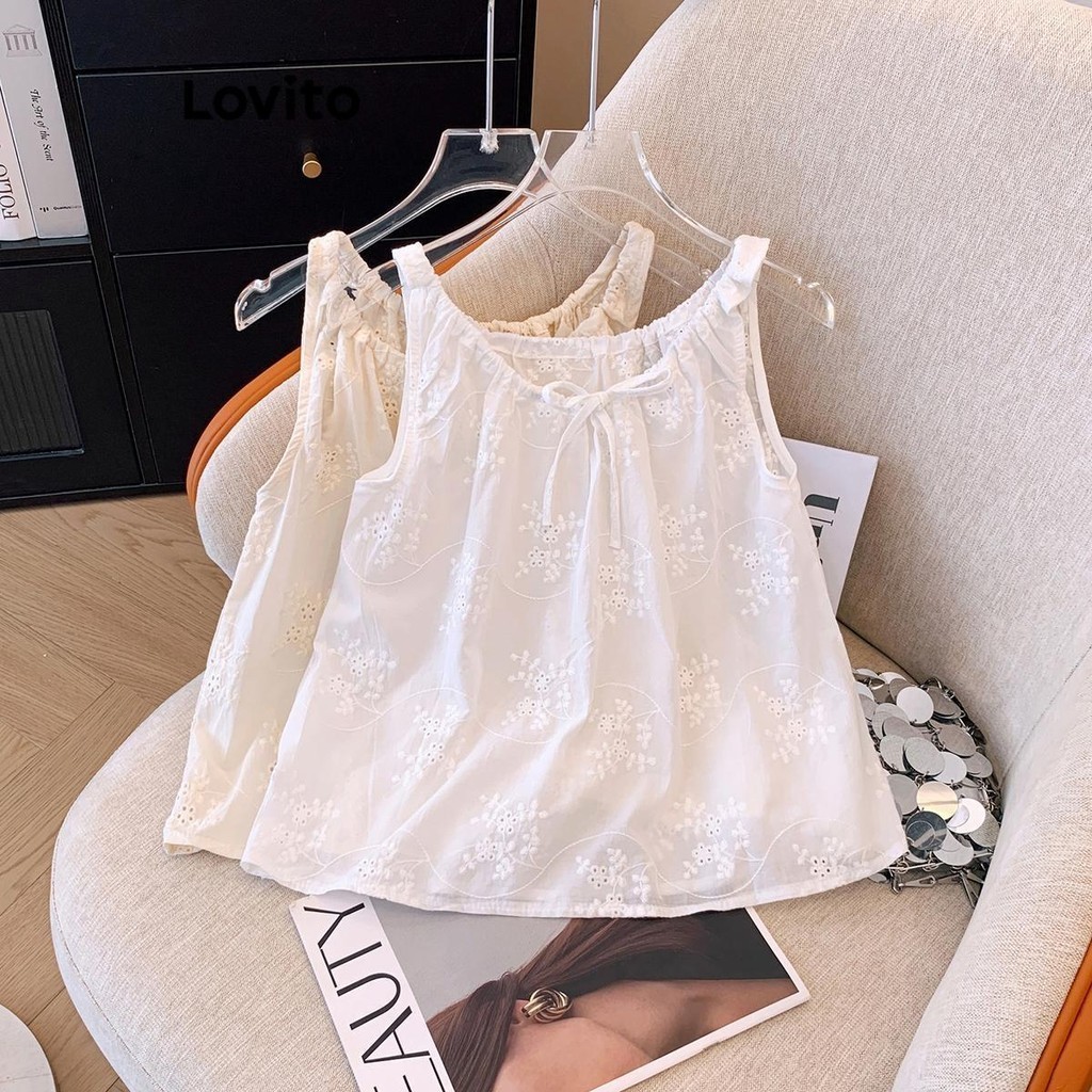 Lovito Regata Feminina Casual Lisa Em Jacquard Com Renda E Smocked LNE31197 (Damasco/Preto)