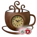 Relógio de Parede Wincy Xicara Silencioso Decoração Cozinha Analógico Branco Vermelho Madeira PDA03015