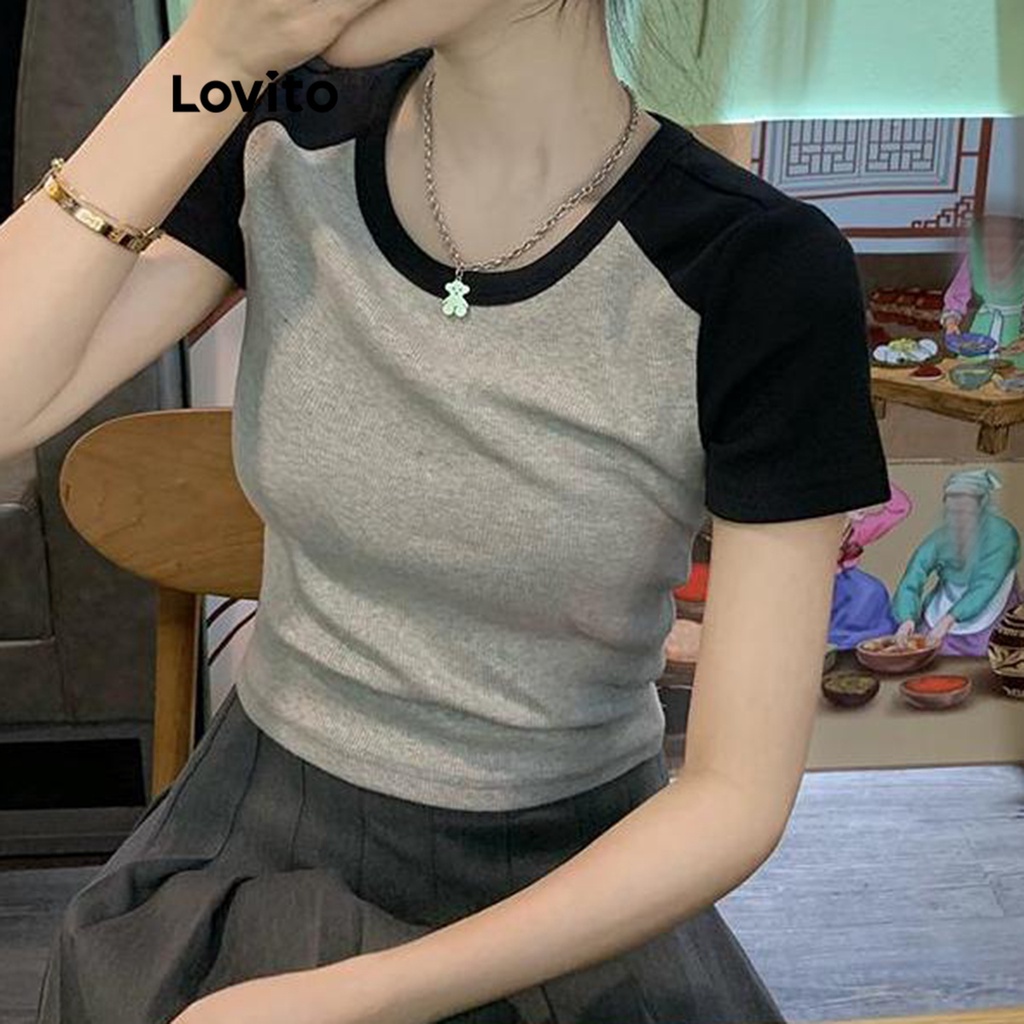 Lovito Camiseta feminina casual patchwork colorblock LNL54007