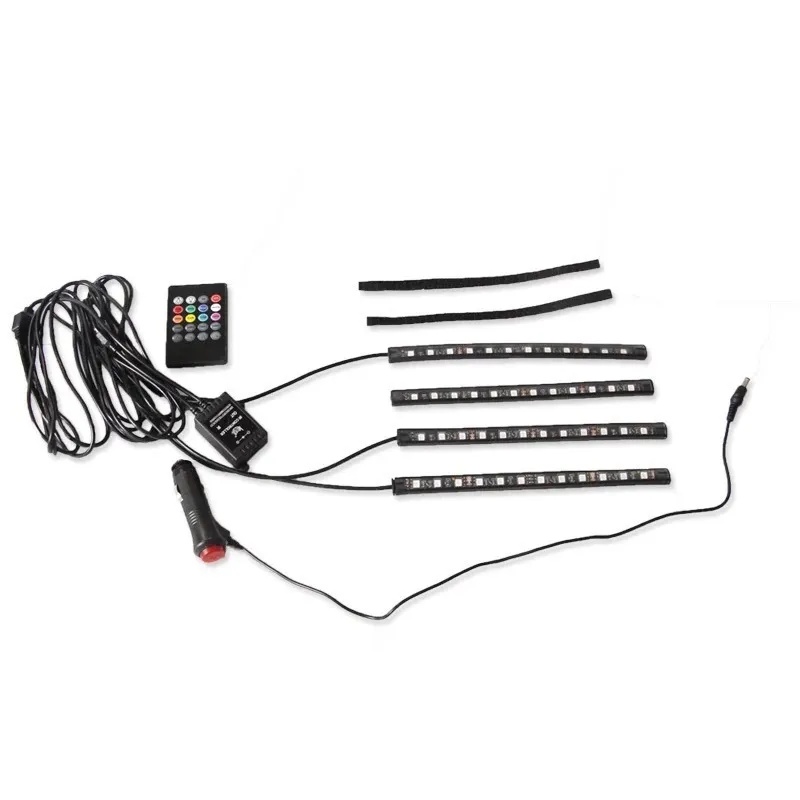 Kit Para Iluminação Interior Carro Luz Led Rgb C/controle Sensor Rítmico 12v 4 Faixas de Luz