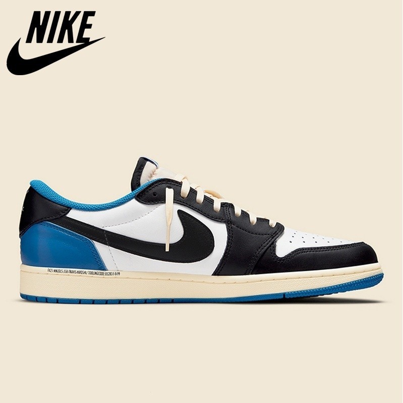 AirJordan 1 AJ1 TS Fujiwara Hiroshi Low Ray Preto e Branco Azul JTMN Respirável Casual Transparente Sports Nike Sneakers