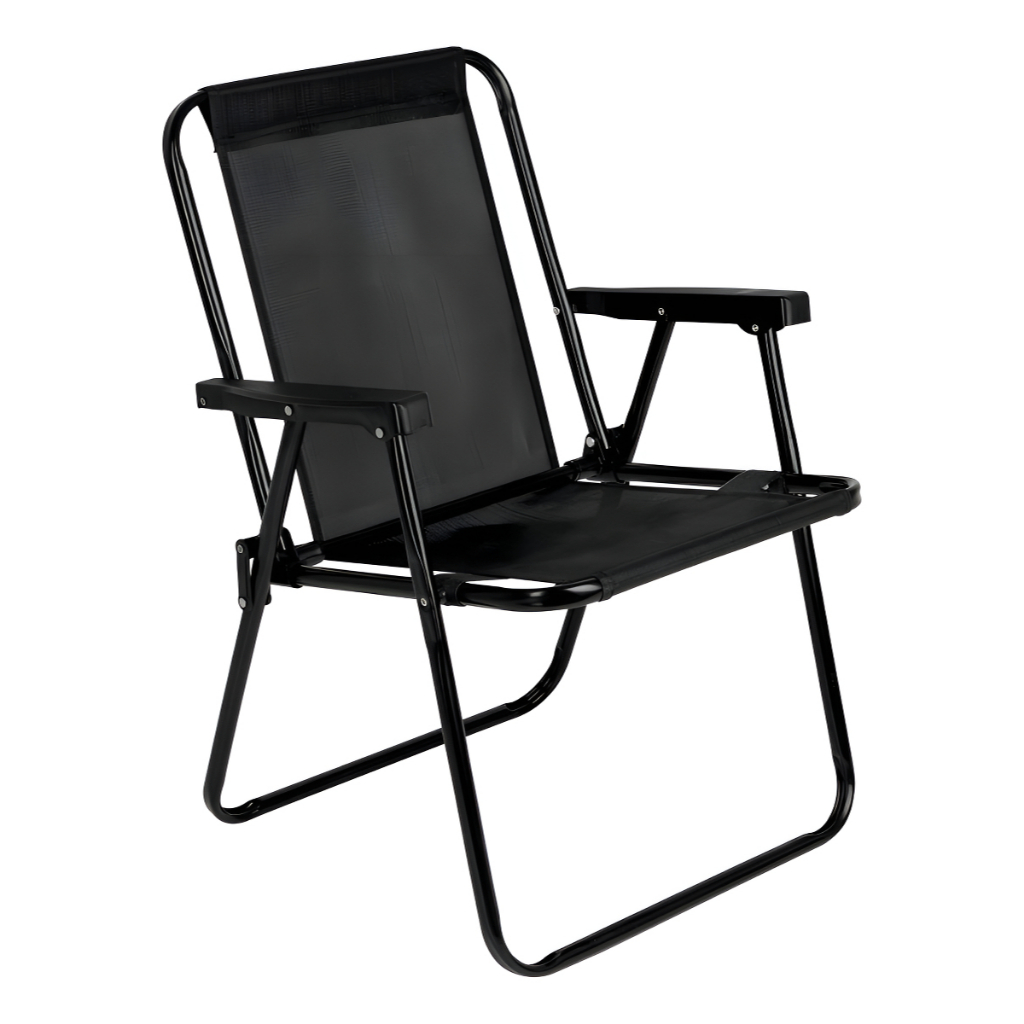 Cadeira Alta de Praia MOR Dobrável Preta Leve Reforçada e Confortável