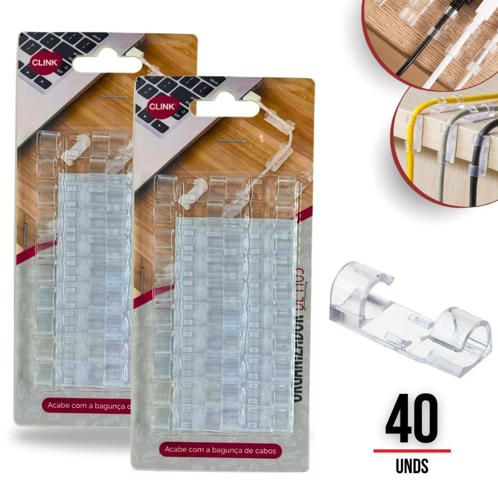 Kit 40 Clips Organizador Fixador Adesivo De Cabos Fios Parede Discreto Ultra Cola 3M Transparente