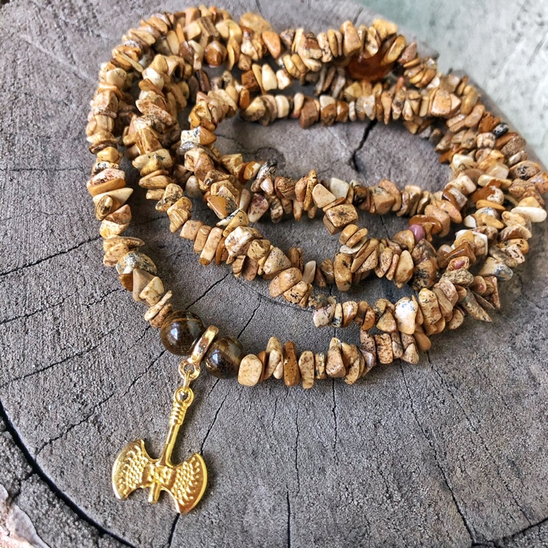 Guia de Xangô em Cascalho Jaspe Madeira com Machado Dourado
