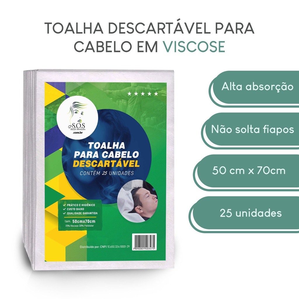 Toalha Descartavel P/cabelo Salao De Beleza Em Viscose 50 X 70 Cm Com 25 Unid Sos Beleza Brasileira