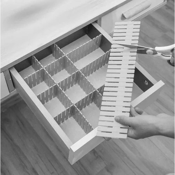 Kit Com 12 Organizador Divisória Gaveta Tiras Ajustavel Plástico Branco