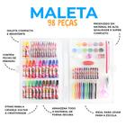 Maleta Kit de Arte Escolar com 68 98 Peças Glam Girls Pintura Desenhos Giz Canetinha Tinta Pincel para Colorir